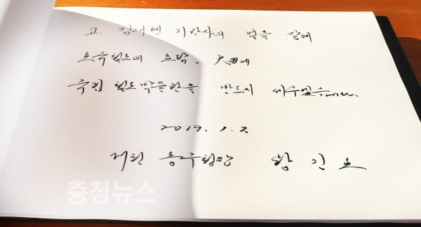 황인호 동구청장 현충원 참배 방명록 작성 내용