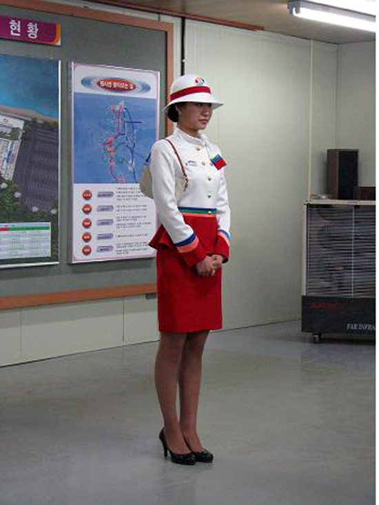 시안은 빨강 치마, 흰색 자켓으로 치마의 경우 여성 정장 치마기장인 무릎 위 5cm, 자켓은 몸에 달라붙고 양 팔은 손목까지 내려오는 스타일이다.