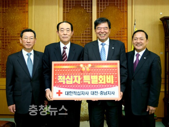 김남욱 대전시의회 의장은 9일 오전 시의회 의장실에서 박건영 대한적십자사대전·충남지사장에게 적십자특별회비를 전달했다. ▲ 김남욱의장 적십자회비납부 이날 김의장은 “적십자사는 모금된 회비는 전액 지역의 어려운 이웃에게 도움을 주는데 사용되고 있는 것으로 알고 있다”며 “앞으로도 적십자 인도주의 사업에 적극 동참 하겠다" 고 말했다. 저작권자 © 충청뉴스 무단전재 및 재배포 금지 성재은 기자 다른기사 보기 기사가 마음에 드셨나요? 충청뉴스 좋은 기사 후원하기 1,000원 3,000원 5,000원 10,000원 30,000원 50,000원 직접입력 비회원 약관동의하기 ※ 소중한 후원금은 더 좋은 기사를 만드는데 쓰겠습니다.