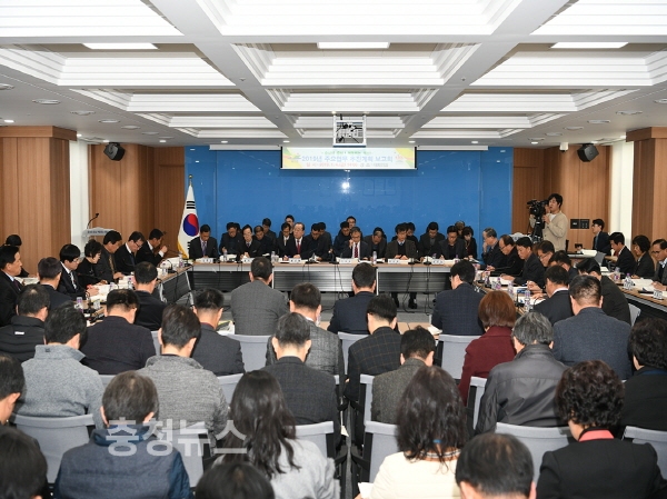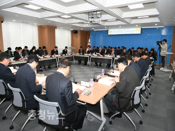 충남 예산군이 지난 4일 대회의실에서 새로운 출발과 각오를 다짐하며 2019년 주요업무 추진계획 보고회를 개최하고 효율적이고 체계적인 군정방향을 논의했다.