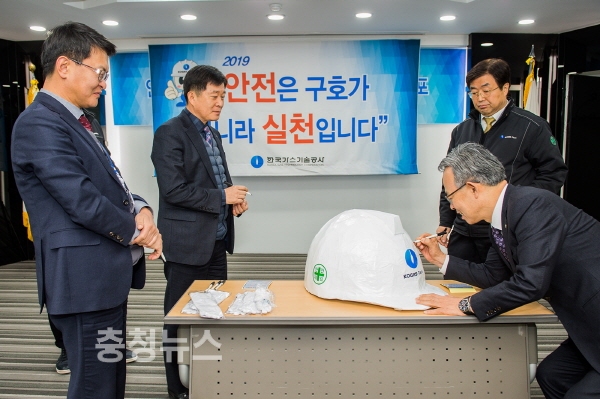 한국가스기술공사(사장 고영태)는 4일 ‘2019년 1월 안전점검의 날’을 맞아 대전 본사 1층 대강당에서 본사 전 임·직원이 참석한 가운데 2019년 안전실천 결의대회 및 안전캐치프레이즈 선포식 행사를 가졌다.