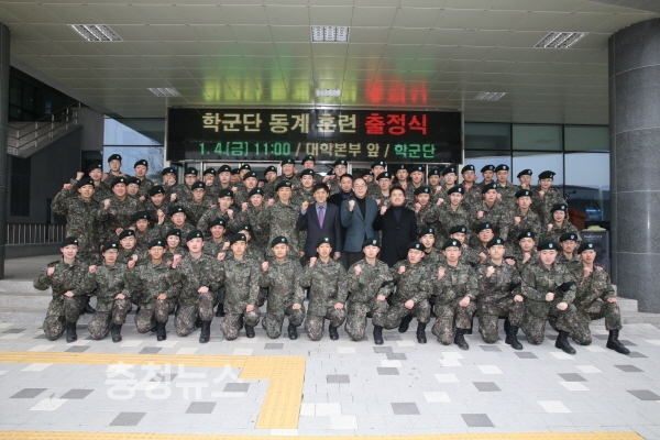 공주대학교(총장직무대리 박달원)는 4일 대학본부 앞에서 학군단 동계훈련 출정식 행사를 가졌다.