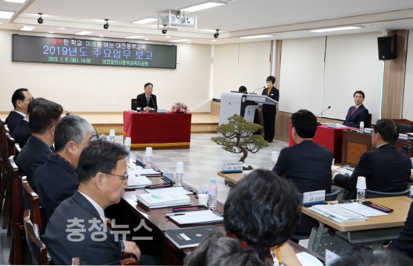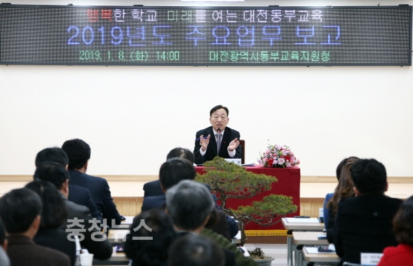 대전시동부교육지원청(교육장 전병두)은 8일 동부교육지원청 대회의실에서 설동호 교육감, 초·중학교 교장 대표와 지구별 자율장학 협의체 대표 학교장 및 학교운영위원회 위원장, 공·사립 유치원장 대표, 교육지원청 직원 등 총 90여 명이 참석한 가운데 2019년 주요업무계획 보고회를 가졌다고 밝혔다.