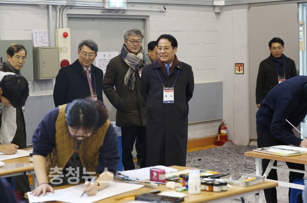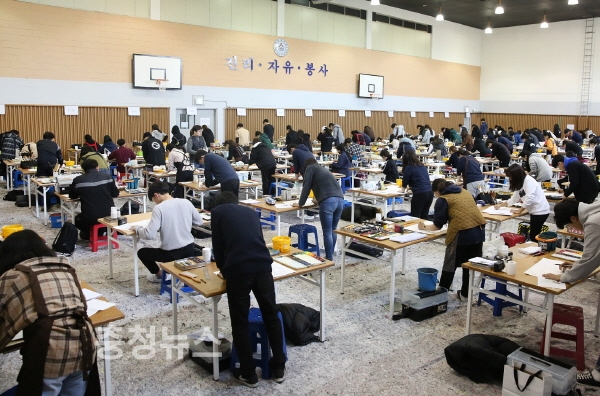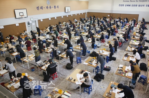 9일 오후 대전 대덕구 오정동 한남대학교 체육관에서 수험생들이 한남대 2019학년도 정시모집 미술 실기고사를 치르고 있다.