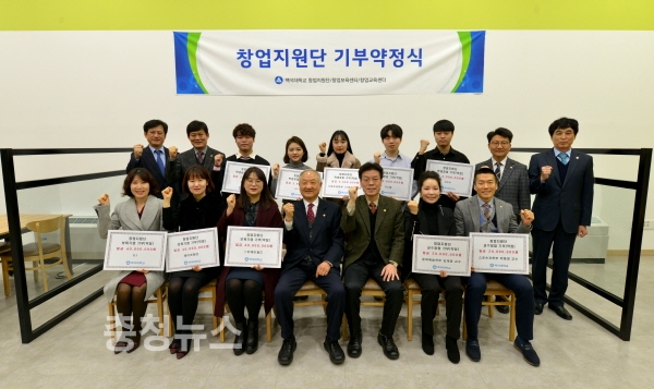 백석대학교 창업지원단은 10일 교내 본부동 창업카페에서 기부약정식을 개최했다. 이날 약정식에는 장택현 대학혁신위원장을 비롯한 대학 보직자들과 창업자들이 함께했다.