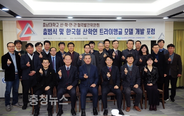 충남대학교 산학연구본부 산학협력중개센터와 LINC+사업단은 지난 11일, 충남대 영탑홀에서 ‘산학연관 협력발전위원회 출범식 및 한국형 산학연 트라이앵글 모델 개발 포럼’을 개최했다.