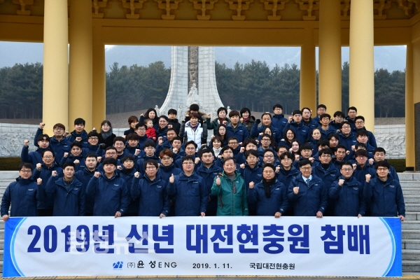 (주)윤성ENG는 호국 영령들의 호국정신을 본받아 노사 모두가 국가와 국민을 위하는 마음자세로 수년째 시무식을 국립대전현충원에서 지내고 있다.