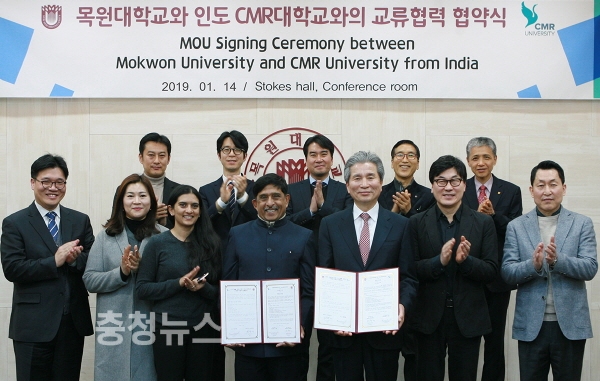목원대학교(총장 권혁대)는 14일 교내 도익서홀에서 인도 CMR종합대학교와 양교의 교육 및 연구분야 협력관계 증진을 위한 교류협력 협약을 체결했다.