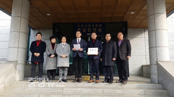김경석 서구의회 부의장을 비롯한 서구의원 7명은 이날 오후 대전지검 민원실을 찾아 서구체육회 전 임원 A씨에 대한 진정서를 제출하고 "횡령죄에 대해 엄중히 수사해 처벌해 달라"고 요구했다.