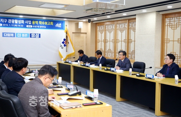 대전 유성구(구청장 정용래)가 유성온천지구 관광활성화 조성사업 용역 착수보고회를 17일 구청 중회의실에서 개최했다.