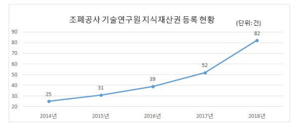 조폐공사는 18일 산하 기술연구원의 지식재산권 출원 건수가 지난해말 현재 1017건으로 1000건을 돌파했다고 밝혔다.