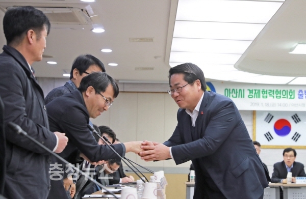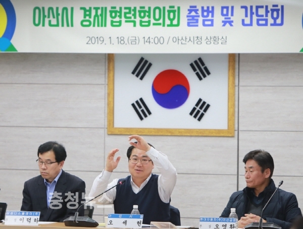 아산시(시장 오세현)가 18일 시청 상황실에서 올 한해의 지역경제 기틀을 잡는‘아산시 경제협력협의회 출범식’을 가졌다.