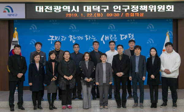 대덕구(구청장 박정현)가 지역인구문제에 대한 해법 모색을 위해 분야별 민간전문가가 참여하는 대덕구 인구정책위원회(이하 인구위원회)를 발족하고 위원 위촉식과 첫 정기회의를 22일 구청 중회의실에서 가졌다.