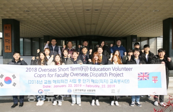 공주대학교(총장직무대리 박달원) 사범대학은 22일 오전 11시 30분 사범대학 건물 앞에서 박달원 총장직무대리를 비롯한 이병기 사범대학장, 학생 17명, 관계자 등이 참석한 가운데 해외교육봉사 발대식을 갖고 피지로 떠났다.