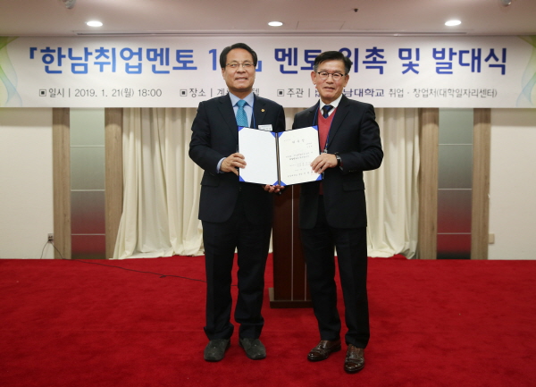 행사는 진현웅 한남대 취업.창업처장의 경과보고, 이덕훈 총장의 격려사, 취업멘토 대표 위촉장 수여, 취업우수지도 교수 포상, 대학현황 소개 등의 순으로 진행됐다.