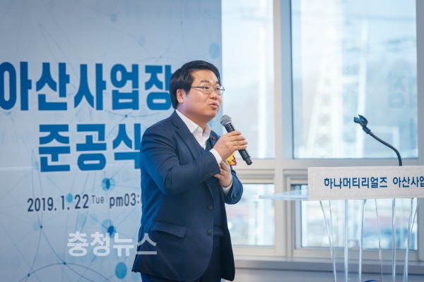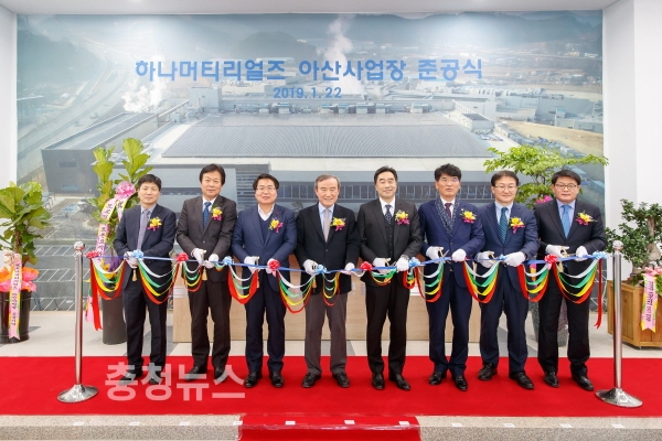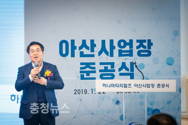 오세현 아산시장은 축사를 통해 “미래의 지역산업과 경제발전을 선도하게 될 하나머티리얼즈 아산사업장 준공까지 애써오신 최창호 회장, 오경석 사장 및 기업 관계자 여러분의 노고에 감사의 말씀을 드린다”며