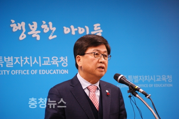 최교진 교육감은 23일 긴급 기자회견을 갖고 "2019학년도 평준화 후기 일반고 신입생 배정 과정에서의 오류로 혼란을 초래하여 학생과 학부모님들께 심려를 끼쳐드린 점에 대하여 교육감으로서 다시 한번 깊이 사과드린다"고 밝혔다.