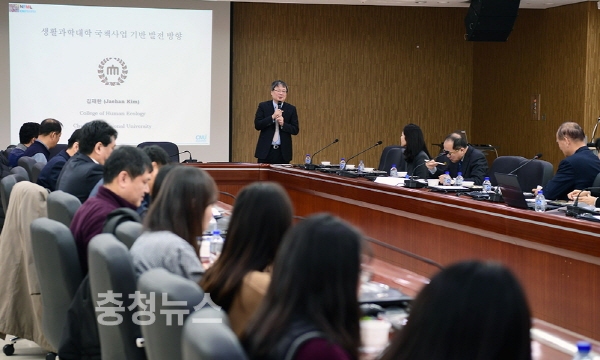 김재한 학장은 ‘지역과 함께하는 생활과학대학’을 주제로 거점국립대학의 지역기반 사회 공공성 강화를 제안했다. 이에 대한 예시로 국립대학 육성사업(PoINT) 지원을 통한 국방생활증진사업, 50세 이상의 장.노년층 교육센터 설립 및 운영 등을 소개했다.