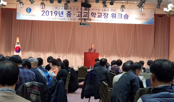 대전시교육청은 24-25일 충남 덕산 일원에서 대전 지역 내 중·고등학교장 160여 명을 대상으로 학교교육계획 수립 및 진로 진학 역량 강화를 위한 ‘2019 중ㆍ고교 학교장 워크숍’을 실시한다.