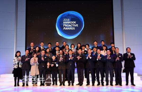 글로벌 선도 타이어 기업 한국타이어가 지난 23일 한국타이어 테크노돔에서 임직원들의 혁신과 도전정신을 치하하는 시상 행사 ‘2018 한국 프로액티브 어워드’를 개최했다.