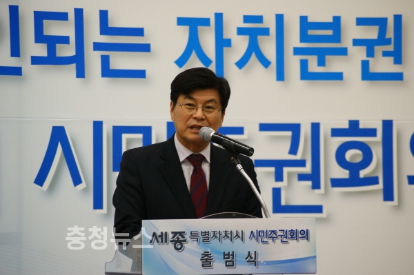 이춘희 세종시장은 28일 세종컨벤션센터에서 열린 ‘시민주권회의 출범식’에서 ‘자치분권과 균형발전의 심장’인 세종시가 "시민이 주인되는 자치분권을 구현 하겠다"고 밝혔다.