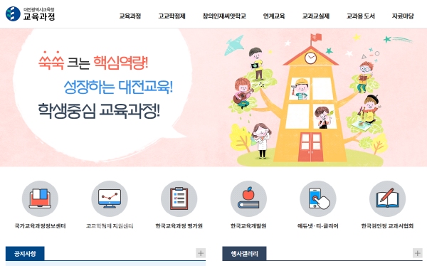 대전광역시교육청(교육감 설동호)은 지난 28일 대전시교육청 홈페이지 특성화 메뉴인 「교육과정 홈페이지」를 이용자 중심으로 전면 개편해 새롭게 운영을 시작했다고 밝혔다.