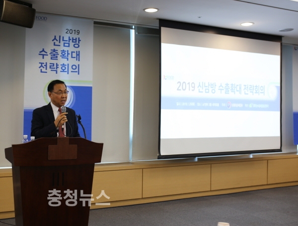 농림축산식품부(장관 이개호)와 한국농수산식품유통공사(aT, 사장 이병호)는 29일 서울 양재동 aT센터에서 국내 농식품 수출업체를 대상으로 아세안시장 진출을 위한 '2019 신남방 수출확대 전략회의'를 개최했다.