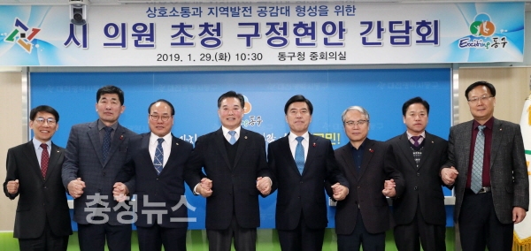 간담회에는 황인호 청장을 비롯한 구청 간부직원과 대전시의회 남진근 운영위원장, 윤종명 의원 동구출신 시 의원 등 10여 명이 참석했다.