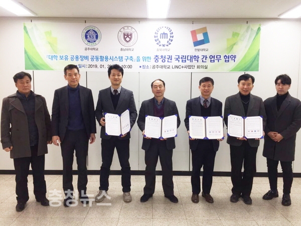 충청도 4개 국립대학 LINC+ 사업단은 지난 12월 28일 각 대학이 보유하고 있는 공용장비의 활용률을 높이기 위해 보유하고 있는 공용장비를 공동으로 사용할 수 있도록 “공용장비 공동활용 시스템 구축”을 위한 대학 총장 간 협약을 맺었다.