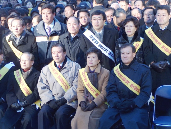 이날 박근혜대표는 “여러분 요즘 살기 좋아졌습니까” “주머니 사정이 나아 졌습니까”라며 말문을 연 후 “서민들의 겨울은 춥기만 하다”며 집권 여당을 몰아붙이고 “현 정권은 무능 정권, 꼼수 정권, 파괴정권”이라고 규정한 뒤 “사학법을 지켜내 아이들을, 미래를 지켜내자”고 강조했다.