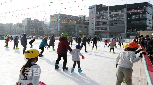 충남 서산시가 운영 중인 야외스케이트장이 겨울철 놀이 명소로 각광을 받고 있다.