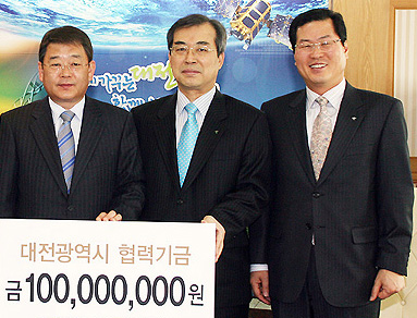 충청하나은행은 26일 대전사랑시민협의회 정기총회에 참석해 기금 1억원을 전달하고 지역사랑 활성화 사업에 써주기를 당부했다.