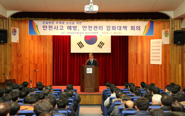 한국농어촌공사 충남지역본부(본부장 김종필)는 30일 본부 대강당에서 공사 및 시공사 직원 등 170여명이 참석한 가운데 건설현장 안전사고 예방 및 안전관리 강화를 위한 결의대회를 개최했다.