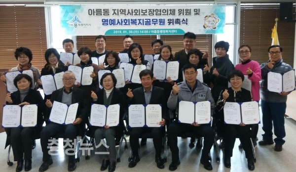 이와 함께 아름동 지역사회보장협의체 위원 전원은 복지 위기가구 발굴을 위한 ‘명예사회복지공무원’으로 위촉돼 이날 발대식을 개최했다.