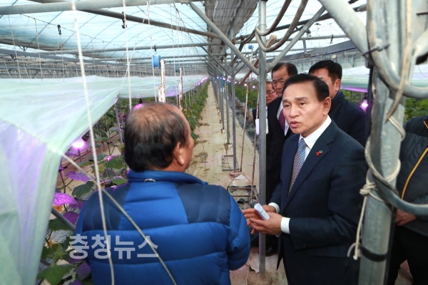 구 시장은 이날 오후 목천읍 행정복지센터에서 지역 주민과 대화의 시간을 갖고 동평리 소재 첨단 양액재배시설인 시설원예(오이) 영농법인(대표 노승찬)을 방문해 관계자들을 격려하고 현장의 어려움을 수렴했다.