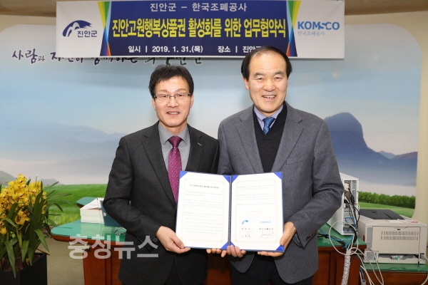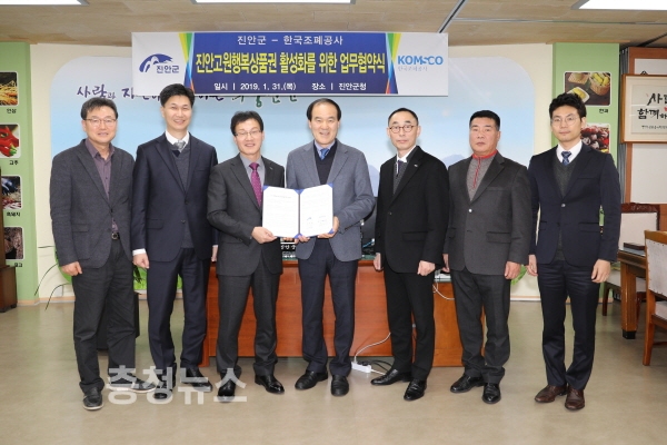 조폐공사는 31일 진안군청 군수실에서 황문규 기술·해외이사, 이항로 진안군수 등이 참석한 가운데 진안군청과 ‘진안고원 행복상품권’ 발행을 위한 업무협약을 체결했다.