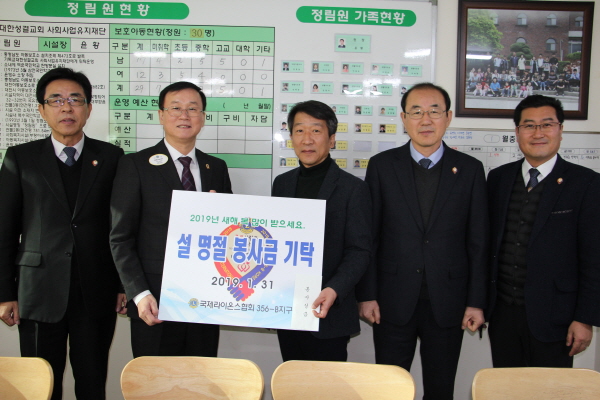 국제라이온스협회 356-B지구 김홍호 총재는 31일 이주외국인 복지시설인 대전외국인종합복지관과 아동보호시설인 정림원을 각각 방문해 설명절 봉사금을 전달했다.
