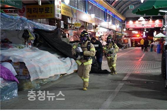 조치원소방서(서장 김수환)는 31일 20시경 세종전통시장에서 소방공무원, 자율 소방대 등 30여 명이 참석한 가운데 전통시장 가상 화재 진압훈련을 실시했다.
