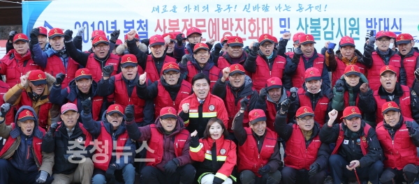 대전 동구(구청장 황인호)는 1일 세천근린공원에서 황인호 청장을 비롯한 대원 등 70여 명이 참석한 가운데 2019년 봄철 산불감시원 및 진화대 발대식을 개최했다.