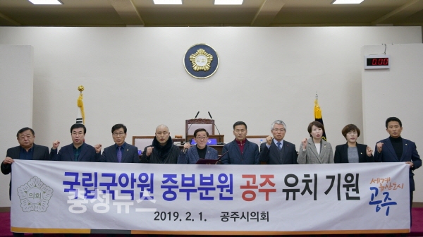이어 국립국악원 중부분원 공주시 유치결의안을 대표 발의한 이상표 의원은 국립국악원 분원이 충청지역에 전무하여 국가균형발전 차원과 공주시가 백제의 왕도이고 충청의 수부도시로써 금강권과 내포권을 아우르는 중부권의 정지, 경제, 문화, 예술, 교육의 집산지이며 박동진 명창등 소리꾼들의 성장활동이 집중되었던 중고제 판소리의 발흥지임을 내세워 공주시 유치의 당위성을 제안 설명하며 의원일동과 11만 시민이 함께 힘을 모아 반드시 유치하기로 결의했다.