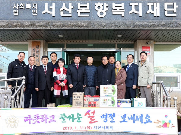 서산시의회(의장 임재관)는 설 명절을 앞두고 31일 관내 사회복지시설 3개소를 위문 방문했다.