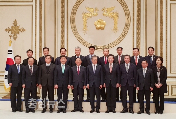 이어 청와대 영빈관에서 진행된 문재인 대통령 주재 오찬 간담회에서는 국정의 동반자로서 역할을 충실히 해 온 지방자치단체를 격려하고 지자체 현안 및 고충을 공유하는 시간을 가졌다.