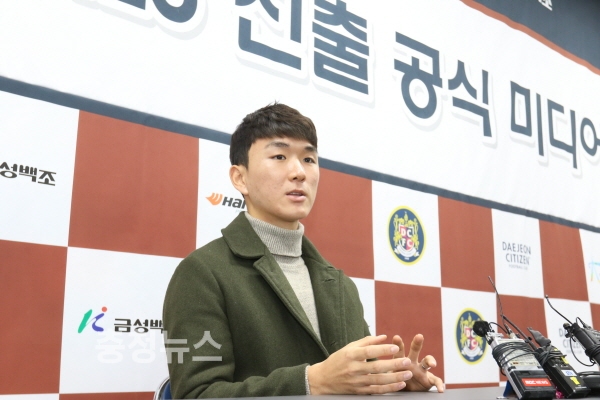 오전 10시부터 진행된 미디어 인터뷰에서 황인범은 “MLS 벤쿠버 화이트캡스로 이적하며 집과 같은 대전을 떠나게 되어 아쉽지만, 이제는 개인적인 목표와 성장을 위해 도전하고 이를 증명해 보여야 할 때인 것 같다.