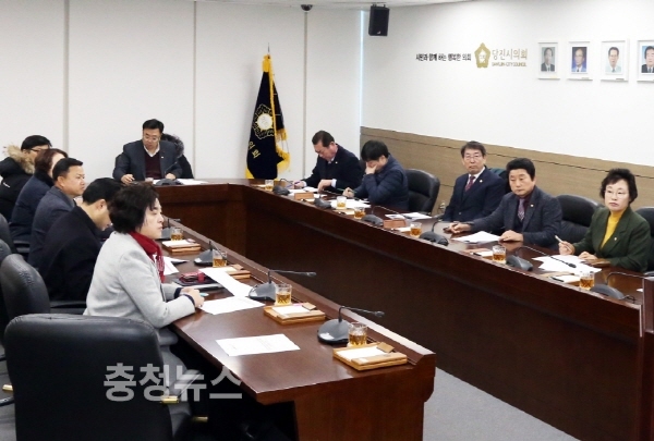 당진시의회(의장 김기재)가 12일 의회 대회의실에서 학교급식 직영화를 통한 정상화 운영방안을 보고받았다.