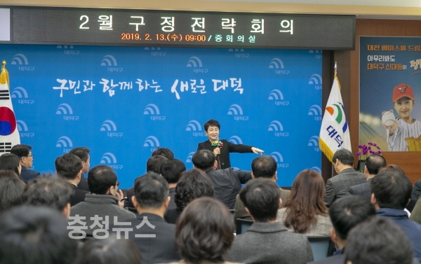 13일 박정현 대덕구청장이 구청 중회의실에서 2월 구정전략회의를 주재하고 있다