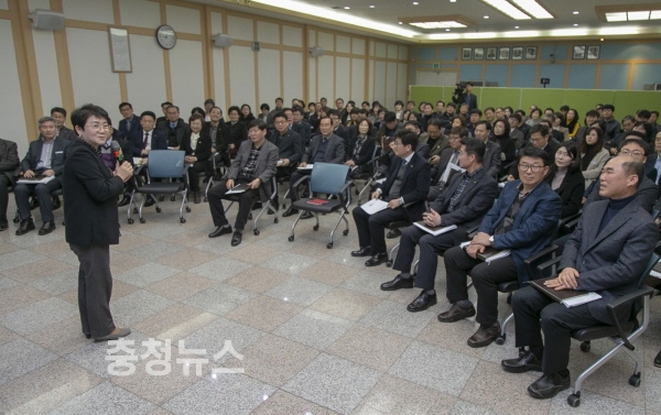 부서 간에 칸막이를 없애고, 동 연두방문은 사업설명회로 바꾼데 이어 박정현 대전 대덕구청장이 이번에는 공직사회 회의문화 혁신에 나섰다.
