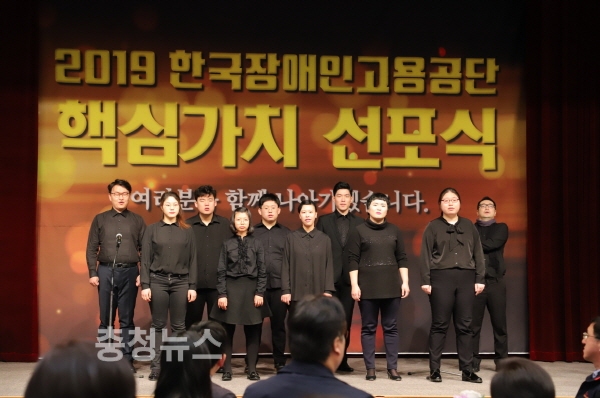㈜뉴딘파스텔(대표이사 한태정)의 ‘골프존파스텔합창단’은 지난 13일(수), 경기도 성남시 분당구에 위치한 한국장애인고용공단 본부에서 열린 ‘2019 한국장애인고용공단 핵심가치 선포식’에서 성황리에 초청 공연을 펼쳤다.