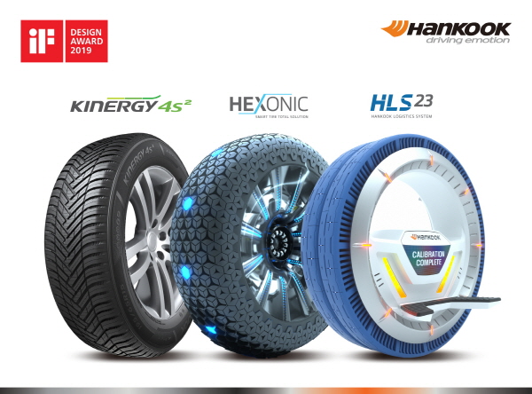 한국타이어(대표이사 조현범)가 독일 ‘iF 디자인 어워드 2019(iF Design Award 2019)’의 콘셉트 디자인 및 제품 디자인 부문에서 콘셉트 타이어인 ‘헥소닉(Hexonic)’과 ‘HLS-23’, 승용차용 타이어인 ‘키너지 4S 2(Kinergy 4S 2)’로 3개의 본상(Winner)을 수상했다.