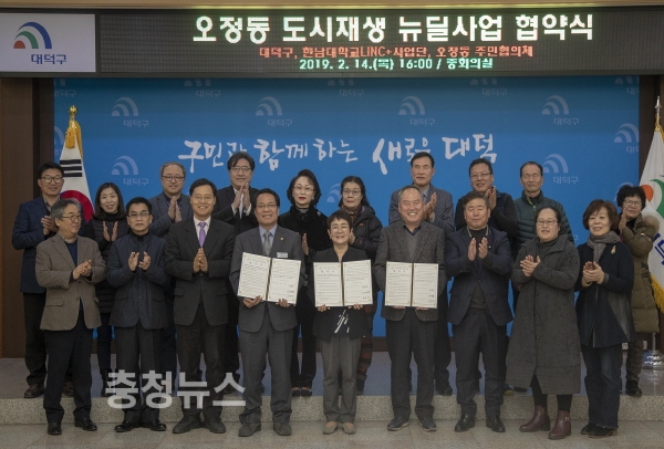 대전 대덕구(구청장 박정현)는 14일 구청 중회의실에서 ‘북적북적 오정&한남 청춘스트리트’ 오정동 도시재생 뉴딜사업 추진을 위한 협약식을 체결했다.