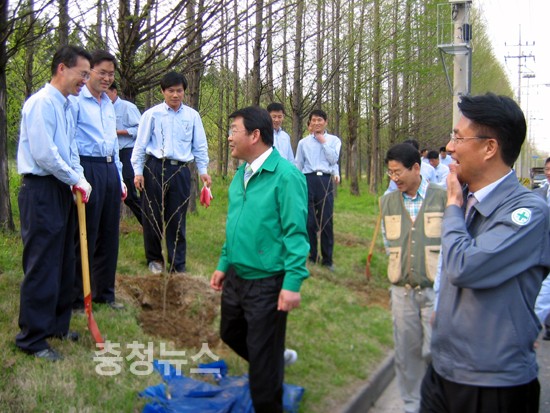 ▲ 3천만그루나무심기에 나선 박성효 시장 과 최상권 이사장 임직원